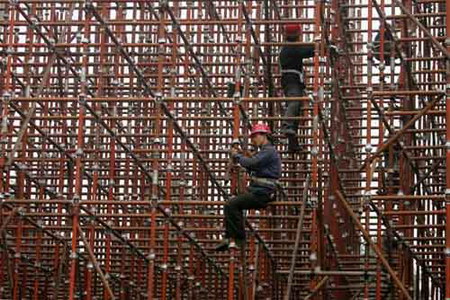 腳手架指建筑工程施工現(xiàn)場(chǎng)為方便工人操作并解決垂直和水平運(yùn)輸問(wèn)題而搭設(shè)的各種支架。建筑界的通用術(shù)語(yǔ),是指在建筑工地上用在外墻、內(nèi)部裝修或?qū)痈咻^高無(wú)法直接施工的地方。主要為了施工人員上下施工作業(yè)或外圍安全網(wǎng)維護(hù)及高空安裝構(gòu)件等。腳手架制作材料通常有:竹、木、鋼管或合成材料等。有些工程也用腳手架當(dāng)模板使用,此外在廣告業(yè)、市政、交通路橋、礦山等部門(mén)也廣泛被使用。